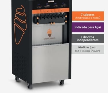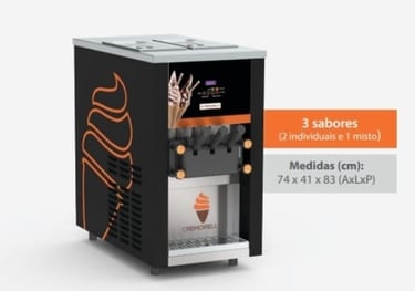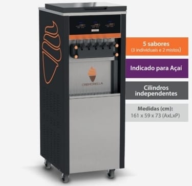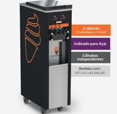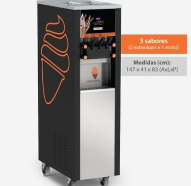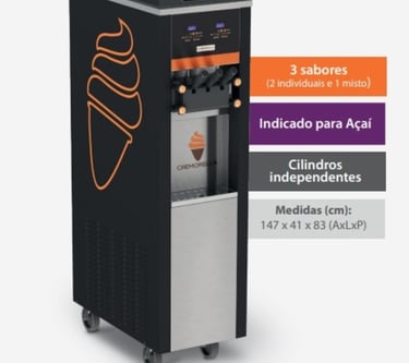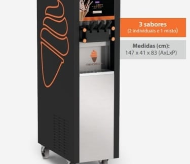 Máquina de 3 bicos, de coluna, compressores inverter, 220v monofásica. 200 casquinhas/hora.